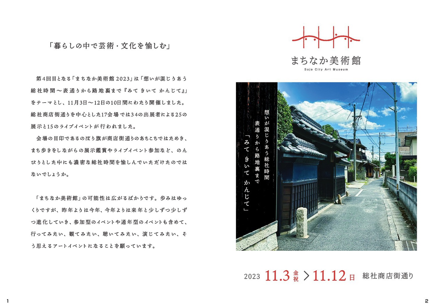 Art exhibition catalogue 図録 2023 総社市オフィシャルサイト 総社市の観光スポット(じゃらん) NPO法人 総社商店街筋の古民家を活用する会 HP NPO法人 総社商店街筋の古民家を活用する会 FB 総社市文化協会FB 堀家ハッカ・プロジェクト